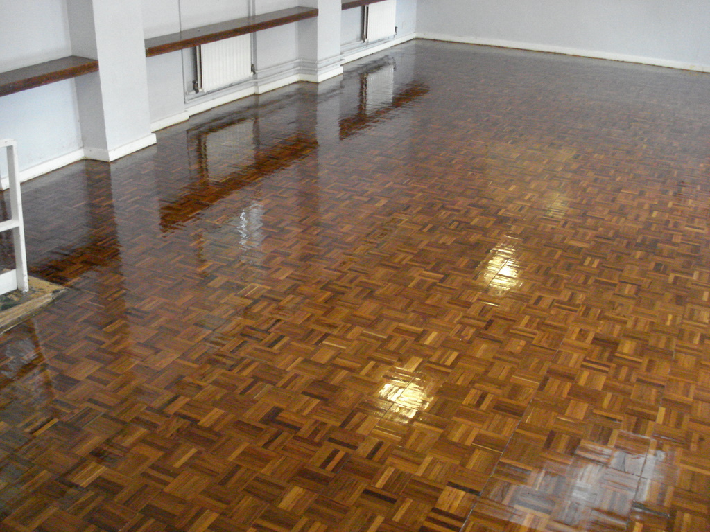 Maple hardwood Block Flooring Repaired, Sanded and Sealed. & ‘Composition Block’ Flooring Cleaned, Abraded and Re-seal.