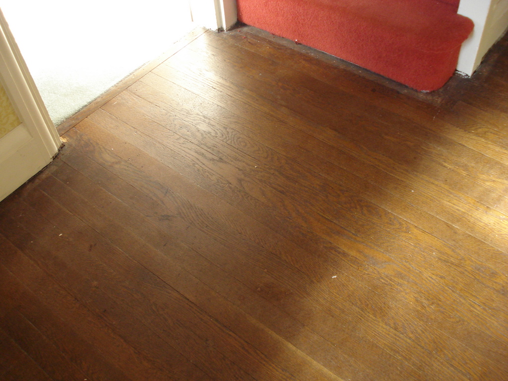 Residential Oak Hardwood Strip floor Restoration by Floorcare Services. Previously waxed Oak hallway floor Sanded and Sealed with 3 coats of Satin finish Water based Polyurethane Seal. By using a Water based Polyurethane Seal the drying time is only 2 – 3 hours so access to other areas of your home isn’t too restricted. Hardwood floor Sanding and Sealing Allestree, Derbyshire.