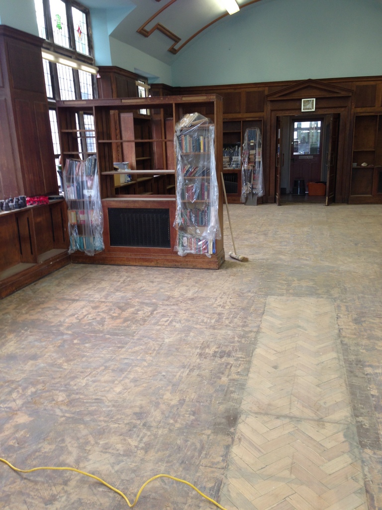 Pine Softwood Block / Parquet flooring Sanded and Sealed by Floorcare Services. This block flooring was Sanded and Sealed at Strutts Community Centre, Belper, Derbyshire.
